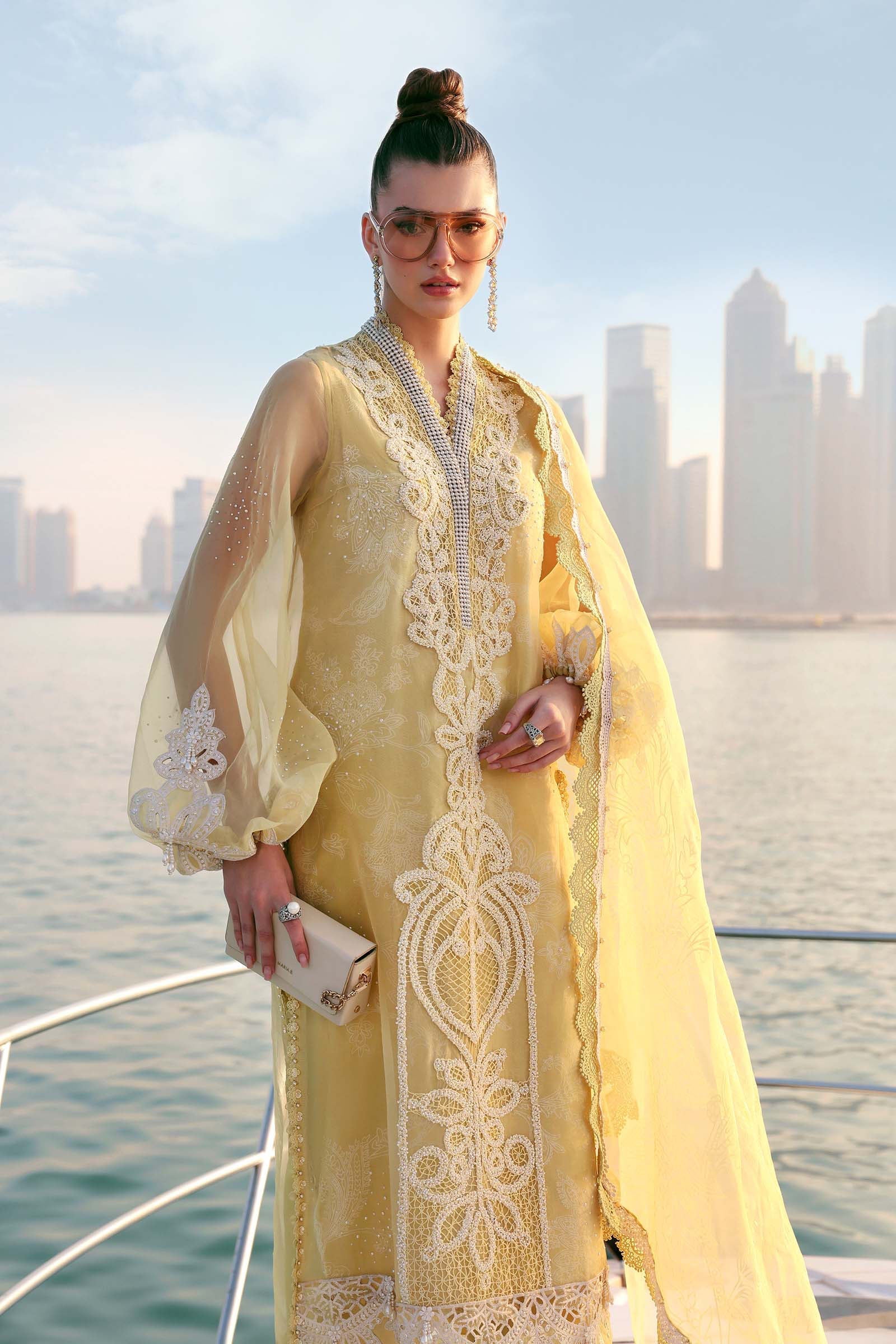 Embroidered Organza Sleeves With Stickon Pearls