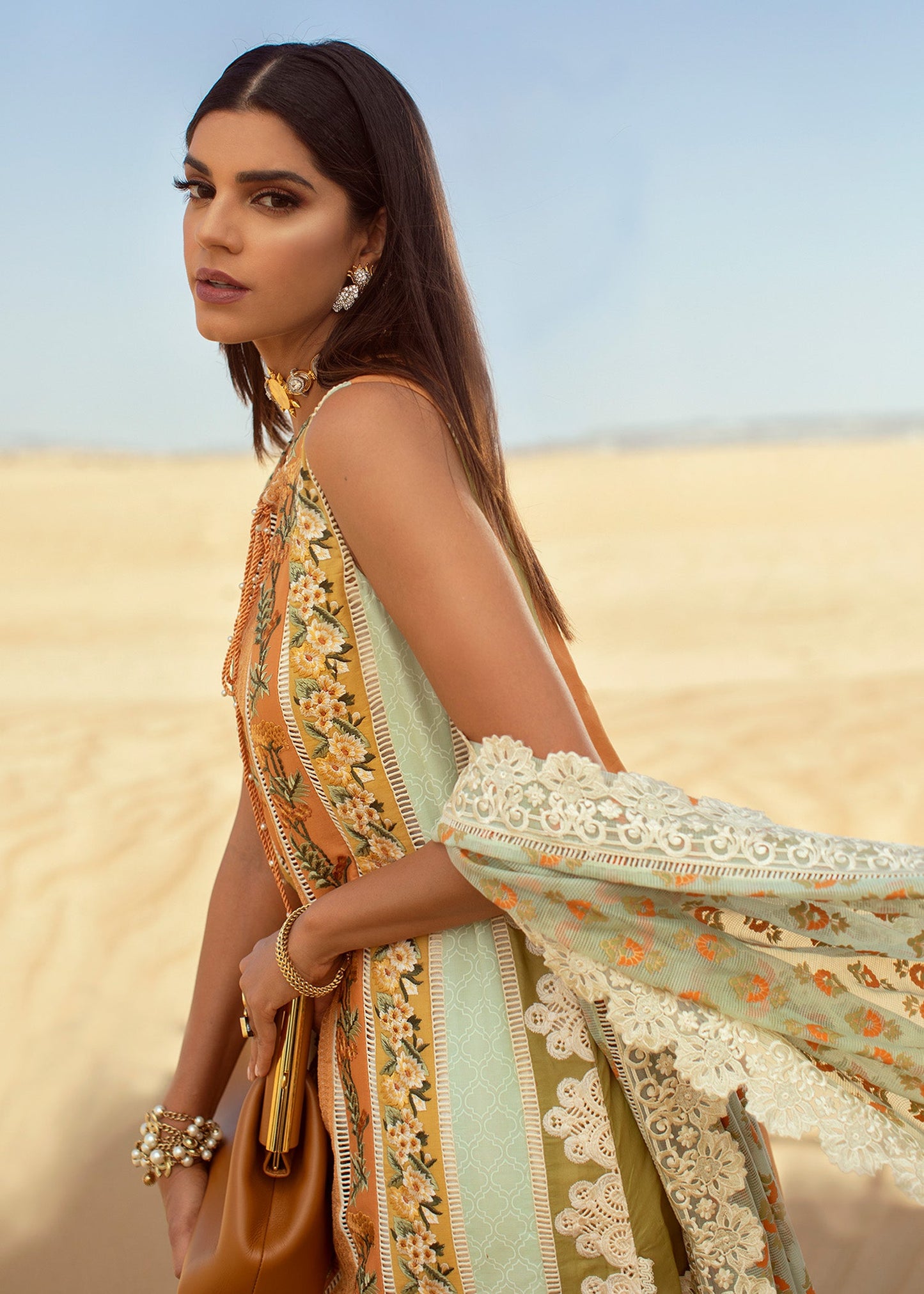 - One Pre-Stitched Front with Three Panels in Pastel Dori and Ghaara Embroidery